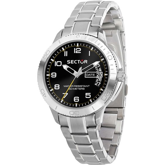 Orologio Solo Tempo Da Uomo Di Sector Della Collezione 270. Cassa In Acciaio Caratterizzata Da Finitura Lucida E Satinata, Diametro Di 43,3X37Mm, Quadrante Sunray Nero E Vetro Minerale. Il Bracciale È In In Metallo Color Acciaio Con Folder Buckle. Orologio Con Movimento Mvt. Vj42B11 Stem H3 Date H3, Datario E Resistenza All'Acqua Di 5 Atm.