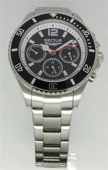 Sector: pura tecnologia e design italiano, dedicato a chi ama mettersi alla prova. Orologio della linea 230, con cassa in acciaio da 39.00mm di diametro, fondello a vite, ghiera girevole unidirezionale e vetro minerale. Movimento al quarzo con calendario e indicazione giorno della settimana. Scatola e garanzia ufficiali.