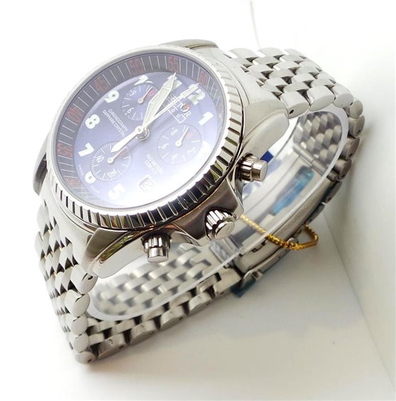 Cassa in acciaio 37 mm, bracciale in acciaio, movimento al quarzo con cronografo, vetro zaffiro, impermeabilità 100 m