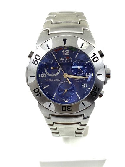 OROLOGIO SECTOR 220 UOMO CON CASSA E CINTURINO IN ACCIAIO, QUADRANTE BLU, CRONOGRAFO- ALARM, ANALOGICO, AL QUARZO. IMPERMEABILITA' 100 METRI.