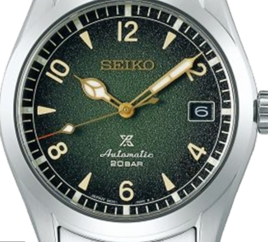 Reinterpretazione del leggendario Seiko Alpinist, ilSPB155j1 è il segnatempo disegnato per gli amanti degli sport e delle avventure su terraferma. Animato dallo spettacolare calibro automatico seiko 6r35 con riserva di carica di 70 ore,24 rubini e frequenza di 21600 alternanze ora, presenta un quadrante verde che rimanda ai paesaggi montani, con indici e sfere con lumibrite per visione notturna. Data a ore tre. Vetro zaffiro bombato antiriflesso. Resistente all'acqua 20 bar e fondello avvitato a vista con iscrizione del calibro sulla massa oscillante di ricarica. Corona avvitata che permette la regolazione data, sfere e carica, con possibilità di fermo macchina per ottimizzare la regolazione dell'orario.