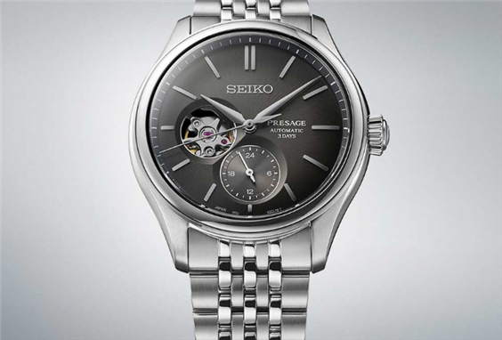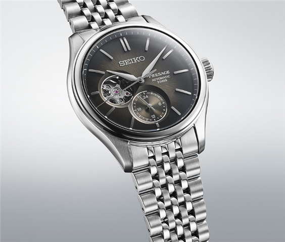 Il Presage Classic Series SPB471J1 è animato dal calibro 6R5j, un nuovo calibro della famiglia di movimenti 6R che offre una riserva di carica di 72 ore. Il quadrante curvo e ricco di texture esprime la morbidezza e l'elasticità della seta grezza, il cui uso è intimamente legato alla cultura giapponese. La cassa è curva e il vetro zaffiro a doppia curvatura riprende i contorni del quadrante bombato. Un nuovo bracciale a più file, il cui design si ispira agli anni '70, offre una sensazione di eleganza e comfort al polso. diametro 40.20.ansa 20mm. 21600 alternanze ora. 10 atmosfere w.r. circolare open heart a ore 9.