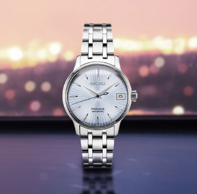 La collezione PRESAGE Cocktail possiede tutto il fascino dei modelli di alta orologeria, ispirati al piacere di sorseggiare un cocktail. Il quadrante a raggiera con effetto sunray, con la sua scintillante bellezza, è sublimato dai sette strati di finitura lucida e dalla limpidezza degli indici in rilievo. La corona, di una forma unica nel suo genere, ti permette di percepire l'energia della coppia del meccanismo di ricarica.