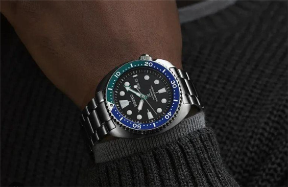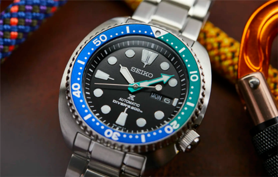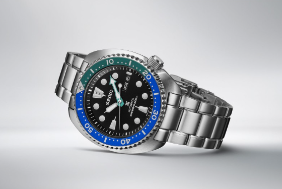 Edizione speciale turtle tropical lagoon, cassa iconica tartaruga di Seiko, quadrante nero, ghiera azzurro verde e lancetta dei minuti bordata in verde. certificato sub 200metri, datario giorno data a ore tre, ottima luminosità al buio. I colori sono un richiamo alla fauna dei mari tropicali, lucente e bellissima. Cassa rigorosamente tataruga turtle, iconica solida e ipnotica per gli appassionati. Meccanismo 4R36. Possibilità di allungo per indosso su muta, cassa e corona avvitate resistente 200 metri. Vetro brevetto Seiko HARDLEX ultra resistente.
