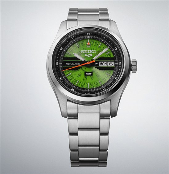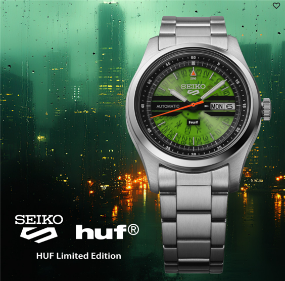 Ispirato a un modello Seiko d’archivio degli anni Settanta, conosciuto come Time Sonar, questo orologio in edizione limitata reinterpreta un’icona del passato attraverso lo stile distintivo di HUF, fondato nel 2002 dallo skateboarder professionista Keith Hufnagel e oggi punto di riferimento nel panorama lifestyle legato allo skateboarding e alla cultura di strada. Basato sulla serie Seiko 5 Sports Field, il segnatempo si distingue per l’esclusivo colore “HUF Green”, simbolo della filosofia del brand, protagonista di un quadrante semi-trasparente che introduce una combinazione cromatica inedita rispetto al modello d’archivio originale, creata appositamente per questa collaborazione, con il logo “huf” posizionato alle ore sei. Il fondello a vista riprende la stessa tonalità verde ed è impreziosito da una grafica ispirata a San Francisco, città in cui HUF è stata fondata, ed è inciso con la dicitura “LIMITED EDITION” e un numero di serie individuale a sottolinearne l’esclusività. L’orologio è presentato in una speciale scatola in acciaio inossidabile e viene accompagnato da un panno originale dedicato alla collaborazione Seiko x HUF, unendo heritage orologiero e spirito street in un’unica creazione di carattere.