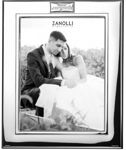 cornice in argento lucido e liscia di fascia larga cm 2,5 cpn applicazione centrale per una nozze D'ARGENTO  misura cm 3,1 x 1,3 retro il legno di colore scuro . misura interna cm 19 14 . certificato di garanzia