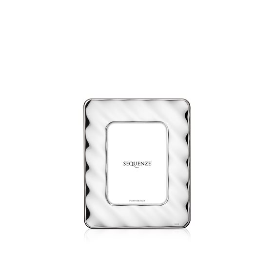 Portafoto in argento Sequenze – Linea Iras cm 13x18 Raffinato portafoto della collezione Sequenze, modello Linea Iras, realizzato in argento bilaminato con finitura lucida e caratteristico motivo ondulato tridimensionale. Le sue superfici sinuose e luminose creano un elegante gioco di riflessi, rendendolo un complemento d’arredo perfetto per ambienti moderni e ricercati. Le dimensioni 13x18 cm lo rendono ideale per custodire fotografie preziose, aggiungendo un tocco di classe e luminosità a ogni spazio.