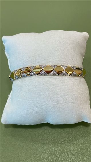 BRACCIALE SOVRANI DONNA IN BRONZO PLACCATO ORO GIALLO CON ZIRCONI BIANCHI, CHIUSURA A MOSCHETTONE,SEMIRIGIDO.
