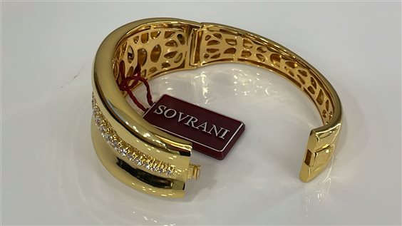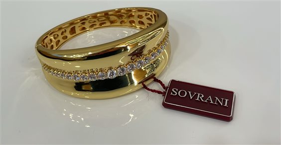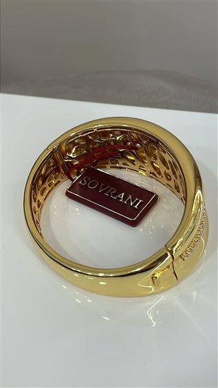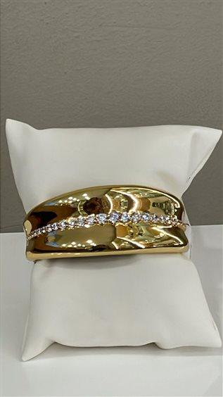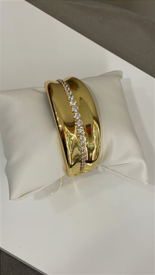 BRACCIALE SOVRANI RIGIDO IN BRONZO PLACCATO ORO GIALLO, CON ZIRCONI BIANCHI.