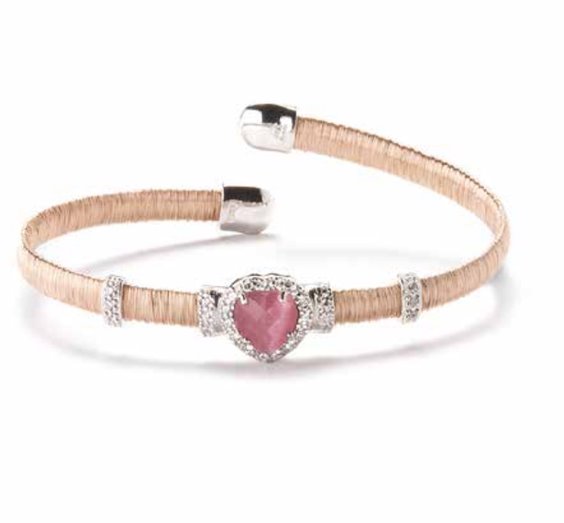 Bracciale rigido in argento 925. Finitura oro rosè con cristallo ametista e zirconi.