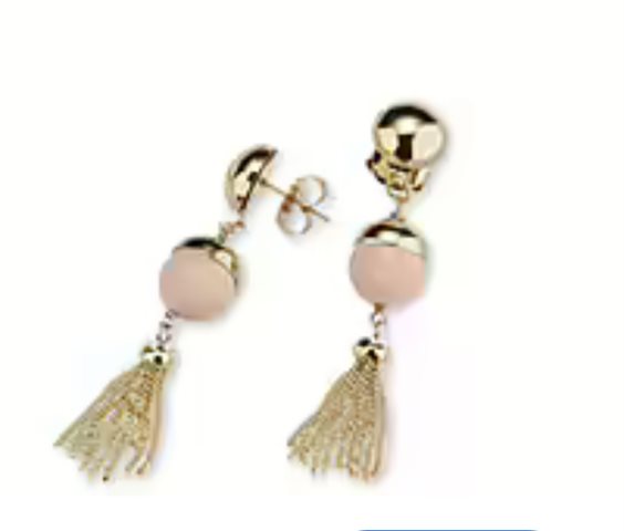 Orecchini in ottone, finitura oro con conchiglia ricoperta rosa cm 6