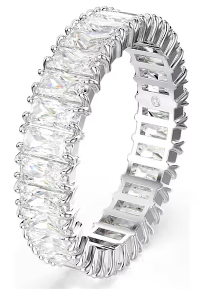 Nessuna collezione di gioielli può dirsi completa senza un radioso anello a fascia. Questo design con finitura in tonalità argento presenta un’intera corona di Swarovski Zirconia dal taglio Baguette, ciascuna posizionata in una raffinata montatura a griffe. Una creazione sensazionale, da indossare da sola o sovrapposta ad altri anelli altrettanto frizzanti della famiglia Matrix. MISURA:55 Collezione: Matrix Materiale: Placcato color argento, Zirconia Colore: Bianco