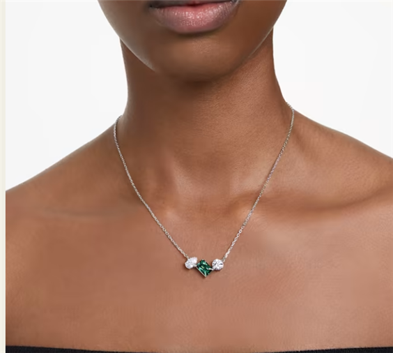 Questo elegante pendente Mesmera offre un tocco di squisita raffinatezza con il suo audace mix di tagli e colori. Montato su una delicata catena, questo design placcato rodio presenta un trio di Swarovski Zirconia con montature a griffe di diverse forme e una splendida pietra centrale in un verde ipnotico. Un meraviglioso regalo che valorizzerà ogni stile. Articolo nr.: 5668278 Collezione: Mesmera Lunghezza (minima - massima): 38 - 45 cm Dimensione decorazione: 1.2 x 2.2 cm Materiale: Placcatura rodio, Zirconia Colore: Verde Tipo di fermaglio: Moschettone