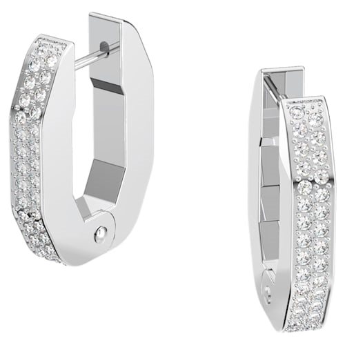 Uno statement di modernità è espresso da questi piccoli orecchini a cerchio di forma ottagonale, dai dettagli complessi eppure strutturati con audacia, che incarnano la sofisticata tecnica pavé di Swarovski. Delicati cristalli bianchi inseriti in montature placcate in rodio sottolineano il design di ispirazione industriale, da indossare singolarmente o sovrapposti sull’orecchio, insieme ad altri elementi della linea Dextera. Parte della linea Dextera, questi orecchini sono firmati dalla Direttrice creativa Giovanna Engelbert per la Collection II. Immagini a scopo illustrativo.