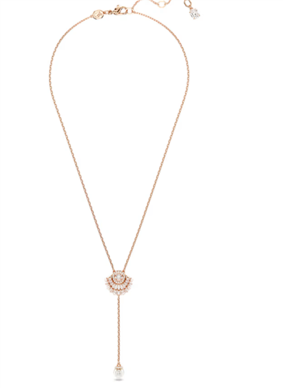 Respira la serenità del mare con questo pendente della famiglia Idyllia ispirato all’oceano. Il design a forma di conchiglia è placcato color oro rosa e impreziosito da una serie di Swarovski Zirconia trasparenti e da un cristallo Cry rotondo danzante che cattura i raggi di luce. Indossato su una delicata catenina, il gioiello è completato da un’unica Crystal Pearl bianca elegantemente sospesa alla parte inferiore. Una serena e radiosa aggiunta al tuo stile da tutti i giorni. Articolo nr.: 5680299 Collezione: Idyllia Lunghezza (minima - massima): 38 - 45 cm Ampiezza: 1.6 cm Lunghezza decorazione Y: 6 cm Materiale: Cristalli, Perla di cristallo, Placcato color oro rosa, Zirconia Colore: Bianco Tipo di fermaglio: Moschettone
