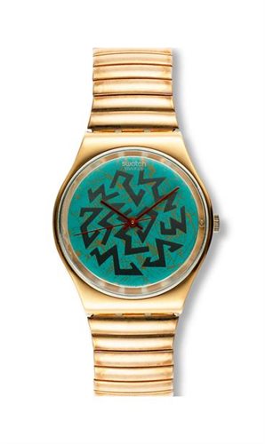 OROLOGIO SWATCH SIGN OF SAMAS QUADRANTE ORO E VERDE BRACCIALE ELASTICO METALLO COLOR ORO