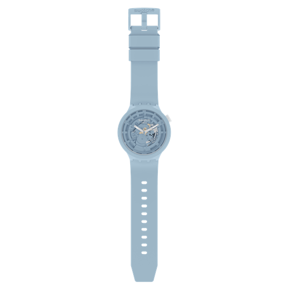Orologio Swatch con cassa in bioceramica e cinturino in materiale di origine biologica.