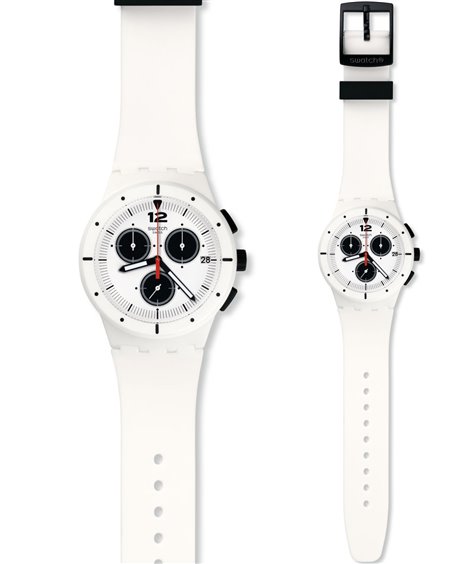 Marchio SWATCH dal 1983 leader mondiale della categoria. Orologio della linea Chronoplastic, con cassa in plastica di 42.00mm di diametro e cinturino in silicone, con datario e funzione di cronografo. Resistente all' acqua, agli urti, precisione al quarzo. SWISS MADE. Scatola originale e due anni di garanzia ufficiale SWATCH.