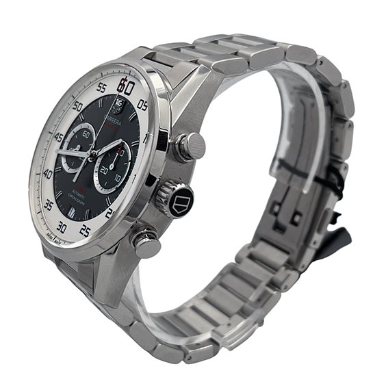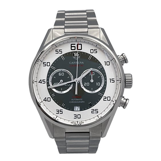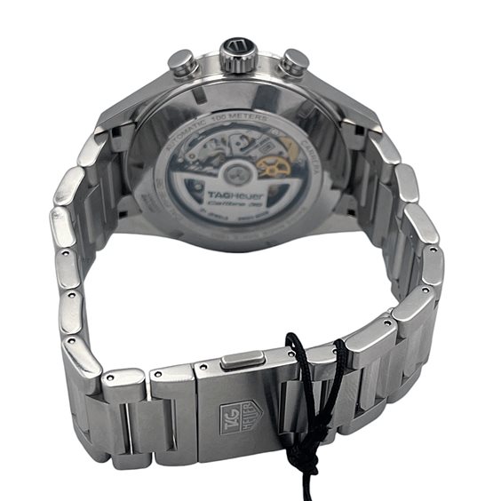 Il TAG Heuer Carrera Chronograph Heuer 01 CAR2B11.BA0799 è un cronografo sportivo dal design moderno e tecnico, parte della celebre collezione Carrera, storicamente legata al mondo delle corse automobilistiche. Questo modello combina estetica contemporanea, prestazioni elevate e la tradizione dell’orologeria svizzera firmata TAG Heuer. La cassa in acciaio inossidabile da 43 mm, con spessore di circa 16 mm, presenta una struttura robusta con finiture satinate e lucide. Il quadrante grigio con contatori cronografici neri è caratterizzato da indici applicati e lancette luminescenti, garantendo un’eccellente leggibilità. La lunetta con scala tachimetrica rafforza il carattere sportivo del segnatempo. All’interno batte il calibro automatico TAG Heuer Heuer 01, movimento cronografo di manifattura con riserva di carica di circa 50 ore, progettato per offrire precisione e affidabilità. Il quadrante è protetto da vetro zaffiro antigraffio, mentre il fondello trasparente in vetro zaffiro fissato con viti consente di ammirare il movimento automatico. L’orologio offre impermeabilità fino a 100 metri (10 ATM) ed è completato da un bracciale in acciaio con chiusura deployante di sicurezza. Il peso è di circa 190–200 grammi, variabile in base alla regolazione del bracciale. Un cronografo sportivo e contemporaneo che rappresenta perfettamente lo spirito della collezione Carrera, unendo prestazioni, design automobilistico e tecnologia orologiera TAG Heuer.