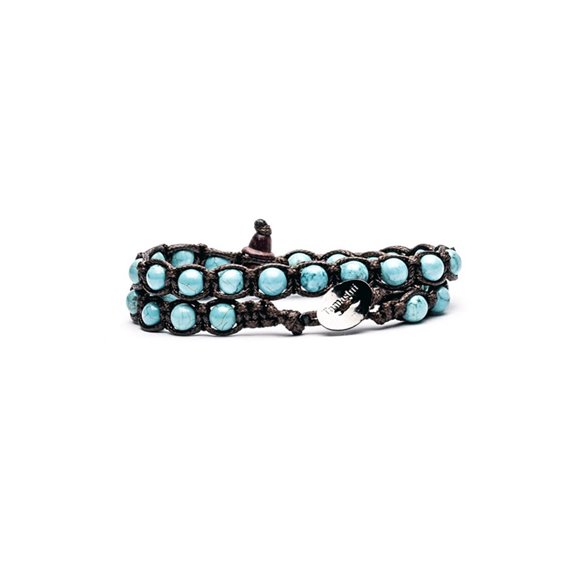 TAMASHII LUNGO TURCHESE Pietra naturale di colore azzurro tendente al verde, il turchese combina il significato e l’esoterismo di questi due colori ed è molto utilizzato nell’esoterismo buddista. Il verde per i buddisti rappresenta la calma e il blu l’ascensione e la purezza. Il Tamashii in turchese calma l’animo trasformando l’ira in saggezza. Bracciale originale tibetano Tamashii realizzato con pietre naturali TURCHESE Del tutto simile alla versione classica ma lungo a due giri di polso. Unisex e taglia unica (il bracciale è predisposto per adattarsi a qualsiasi diametro di polso). In Tibet i gioielli hanno un forte valore simbolico e tramandano valori culturali e religiosi antichissimi. Nella tradizione buddhista le gemme e i gioielli servono come metafore per gli ideali della fede ed esprimono misteriose condizioni spirituali e attributi interiori nascosti. Tamashii (o Shamballa) è un bracciale utilizzato dai monaci tibetani per favorire la meditazione, per le pratiche religiose e come talismano. Infatti Tamashii significa “anima” e il termine deriva da 'tama' che significa “gioiello”, quindi “gioiello dell’anima”. Chi lo indossa persegue un ideale di pace e di amore verso se stesso e verso il mondo, il bracciale aiuta a proteggere la sua anima, a farla crescere e farle trovare un ruolo ed un senso all'interno della vita. Prodotto realizzato in Tibet e benedetto da monaci buddisti.