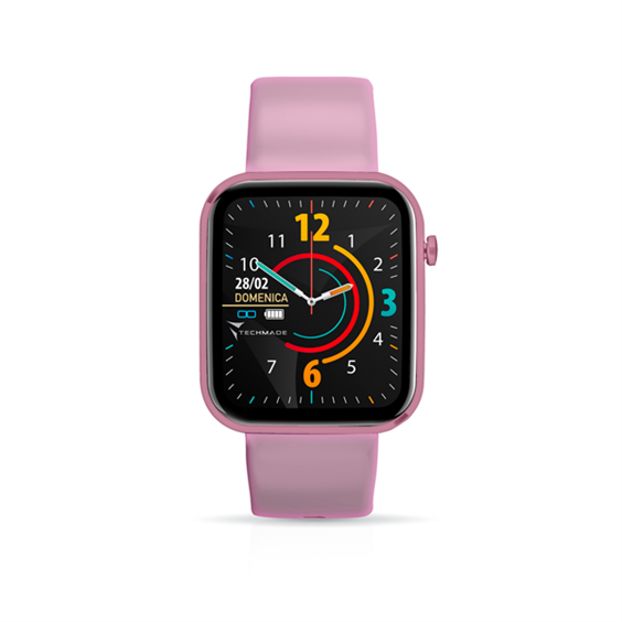 TECHMADE HAVA SMARTWATCH CON FRAME IN ALLUMINIO 1.68" PINK - Compatibilità iOS 9.0 o superiori e Android 5.0 o superiori - Avviso di chiamata, Notifiche, Cardio Test ( Frequenza cardiaca, saturazione e pressione ), Pedometro, Calorie, Distanza, Cronometro, Sleep Monitor, Wrist Sense, Sfondo personalizzabile, Resoconto mestruale, Music remote control, Sport