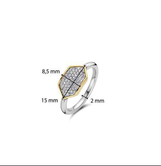 Questo anello d'argento TI SENTO 12310ZY colpisce lo sguardo con l'incantevole pavé di pietre di zirconia cubica incorniciato in una accattivante forma geometrica abbracciata da una montatura placcata oro giallo. La lucentezza delle pietre di zirconia cubica è valorizzata dalla montatura lussuosa e sofisticata. L'anello è realizzato in argento sterling 925 di alta qualità ed aggiunge un tocco vintage anche al più classico degli outfit. Una vera e propria dichiarazione di stile. Tutti i nostri anelli sono privi di nickel e ipoallergenici. Il TI SENTO Anello 12310ZY è realizzato in Argento sterling color oro. Questo anello è di colore Zircone bianco con placcatura d'oro giallo. Ogni gioiello TI SENTO viene confezionato con amore e infinita cura in un bellissimo cofanetto regalo. La magia sta nel nostro argento.