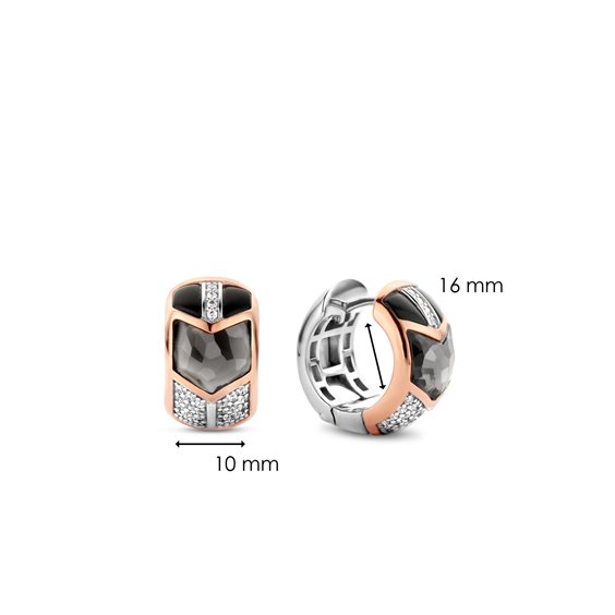 Questi orecchini d'argento TI SENTO - Milano 7828GB si distinguono per le pietre grigie traslucide e di onice nera abbracciate da una montatura placcata oro rosa. Il pavé di zirconi bianchi aggiunge ancora più raffinatezza a queste bellezze. Le forme geometriche si ispirano al simbolo della freccia. Due gioielli dall'incredibile stile art déco e vintage.