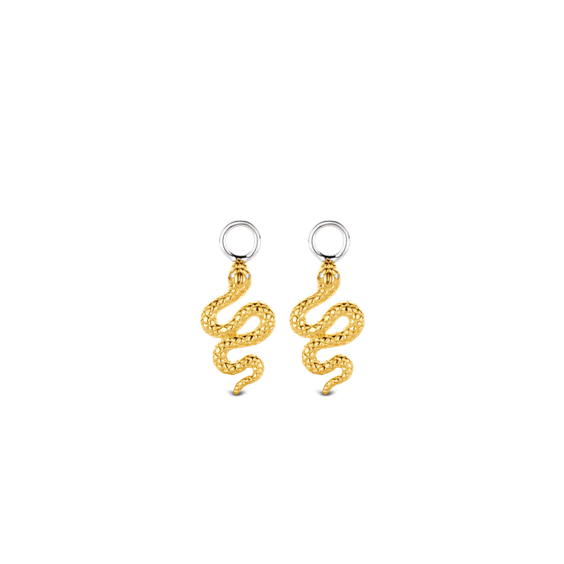 Questi charm d'argento per orecchini TI SENTO - Milano 9200SY, placcati oro, a forma di serpente, aggiungono un tocco intrigante al tuo look. Lasciati incantare dal loro fascino. Abbinali ad altri charm o indossali splendidamente da soli.
