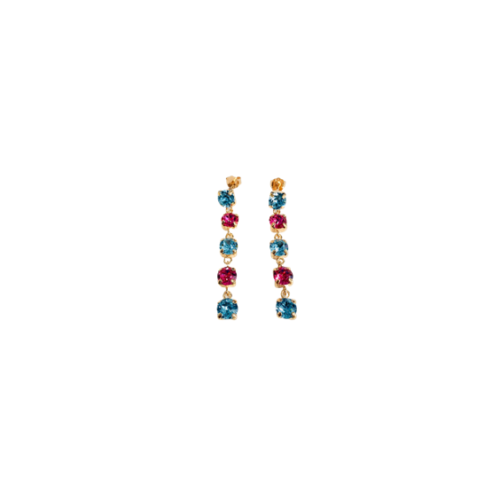 Orecchini pendenti in argento 925% ideati e realizzati da Trova Gioielli, gli orecchini sono impreziositi da zirconi multicolor, lunghezza 5 centimetri, chiusura a farfallina.