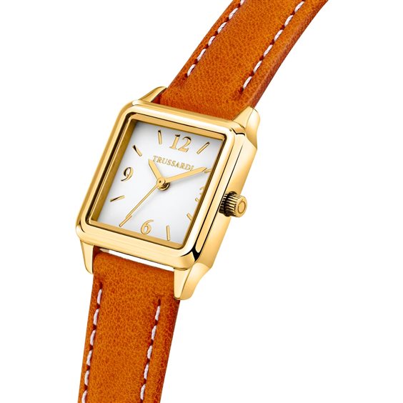OROLOGIO TRUSSARDI T-FORMA - R2451173501 - Genere: Donna, Materiale e finitura cassa: Acciaio, Pelle, Misura cassa: 25.00x33.00mm, Spessore cassa: 7.00mm, Finitura cassa: Lucido, Colore cassa: Gold, Vetro: Vetro minerale, Materiale cinturino: Pelle, Colore cinturino: Marrone, Chiusura: Fibbia ardiglione, Movimento: Quarzo, Water resistant: 3 atm, Garanzia: Ufficiale 2 anni Trussardi, Confezione: Originale Trussardi