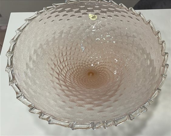 ALZATA IN CRISTALLO DI MURANO FIRMATA PAOLO CREPAX CON BORDO MERLATO. CRISTALLO TAGLIATO A MANO.