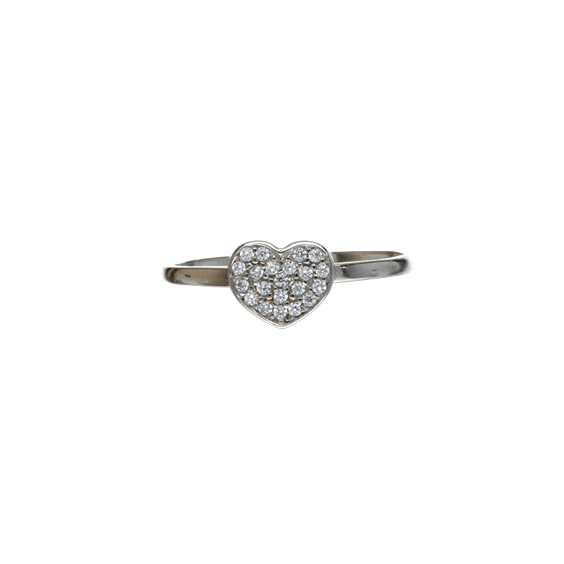 Anello cuore in oro bianco 18 carati ideato e realizzato da maestri orafi italiani, l'anello è impreziosito da zirconi bianchi, peso 1,5 grammi, misura 14 (su richiesta si può portare alla misura desiderata).
