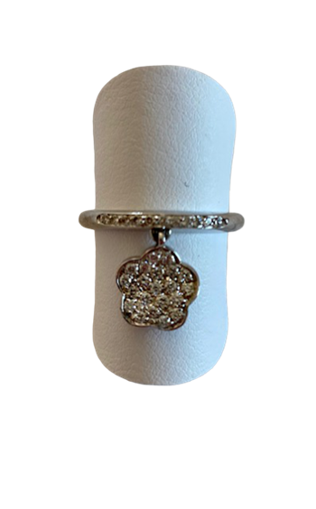 ANELLO IN ORO 18 Ct CON DIAMANTI TAGLIO BRILLANTE PER Ct 0,35. L'ANELLO E' COMPOSTO DA UNA RIVIERE CON UN CHARM MOVIBILE A FORMA DI FIORE .