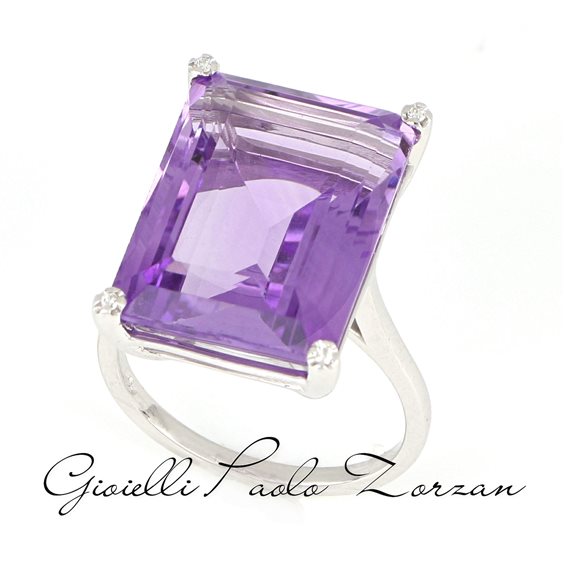 Anello oro 18 Kt Gemma Quarzo Varietà Ametista Naturale Peso ct 13.71 Diamanti Naturali Peso ct 0.03 Purezza SI Colore F
