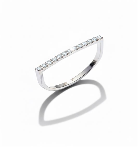 Design essenziale e luminosità contemporanea. Questo anello in oro bianco 18 carati presenta una struttura lineare e geometrica impreziosita da una sequenza di zirconi bianchi taglio brillante, che catturano la luce con raffinata eleganza. Perfetto da indossare da solo per un look minimal chic oppure da abbinare ad altri anelli per creare combinazioni uniche e moderne.