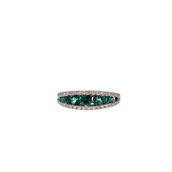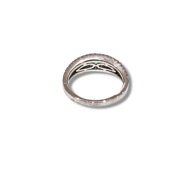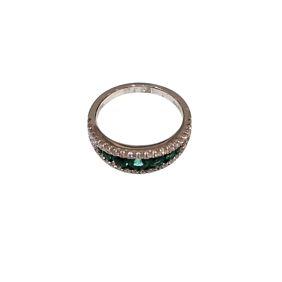 Anello in oro bianco 750%.. con smeraldi ct. 0,57 e diamanti laterali ct. 0,40 G VS. - Misura anello 13