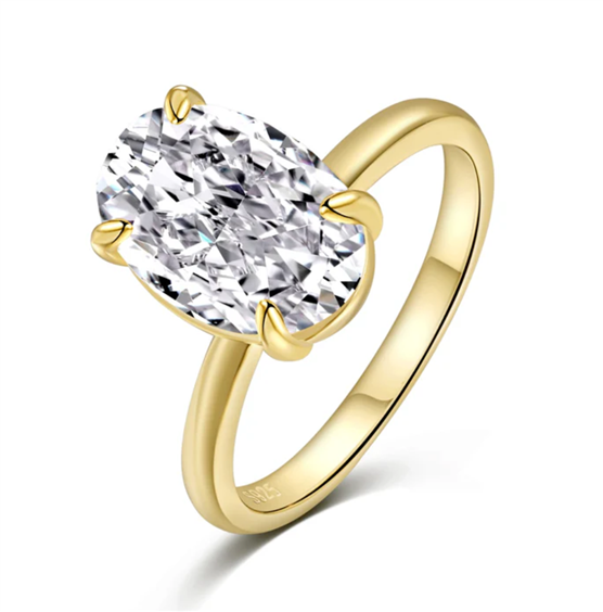 Anello solitario in argento 925 placcato oro 18kt impreziosito con cubic zirconia taglio ovale