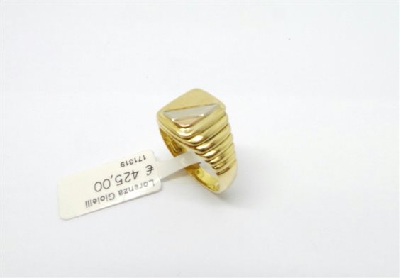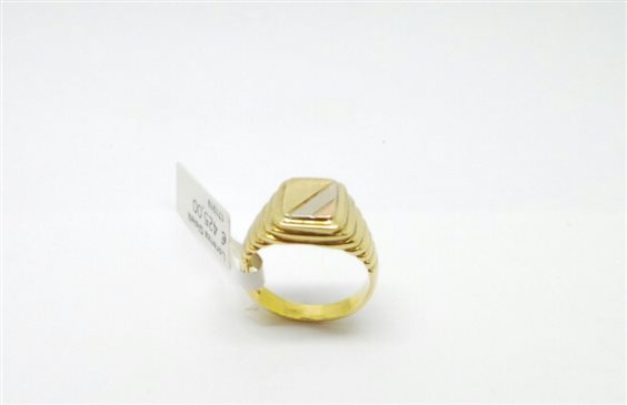 Anello da mignolo classico da uomo in oro con scudo centrale nei 3 colori dell' oro a finitura satinata interamente a finitura lucida. La parte superiore dell'anello misura 10,6 x 7,5mm .Il gambo nella parte inferiore più sottile misura 3,8 mm. Elegante anello da uomo, leggero e di facile indosso, perfetto come idea regalo per lui, realizzato in Italia.
