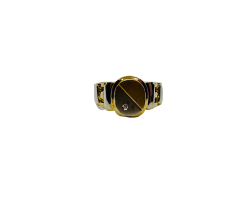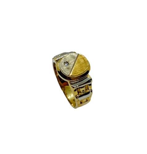 ANELLO IN ORO GIALLO E BIANCO 18K CON DIAMANTE TAGLIO BRILLANTE PER Ct 0,02. ANELLO IN ORO MASSICCIO LAVORATO IN DUE COLORI . LO SCUDO SUPERIORE E' DIVISO DA UN'INCISIONE TRASVERSALE E IL DIAMANTE E' INCASTONATO DALLA PARTE IN ORO BIANCO.