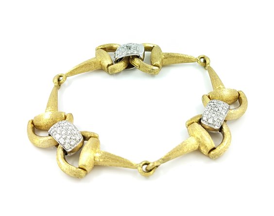 Bracciale Artigianale in Oro Giallo 18kt. con inserti in Oro Bianco 18kt e Diamanti a Taglio Brillante 1.08ct.