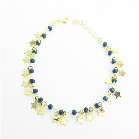 Bracciale in argento 925% con cham a stella e perline blu, lunghezza bracciale regolabile da 18 a 21 centimetri, chiusura ad anelletto a molla.