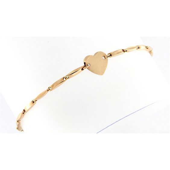 bracciale in oro giallo a forma di grano con centrale a cuore a lastra piena con possibilita' di piccola incisione ,misura cuore 10 x10 m . certificato di garanzia