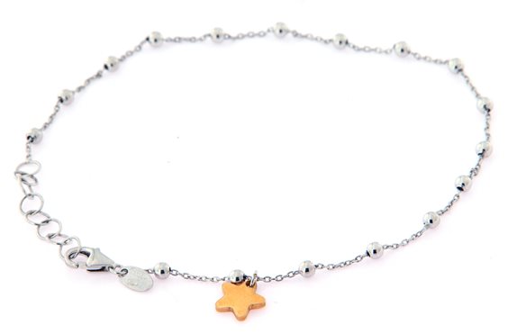 BRACCIALE ORO BIANCO INTERVALLATO DA PALLINE CON PENDENTE STELLINA ORO ROSA 750%.