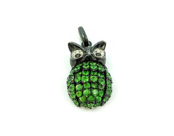 Gufo Pippo Perez in Oro Bianco Brunito 18kt. con Diamanti a Taglio Brillante 0.09ct. con Smeraldi 2.0ct.