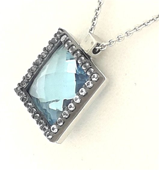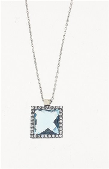 Collana in argento 925 con pendente con pietra naturale azzurra di forma quadrata e taglio sfaccettato. chiusura a moschettone. Anellino per allacciatura a cm. 42
