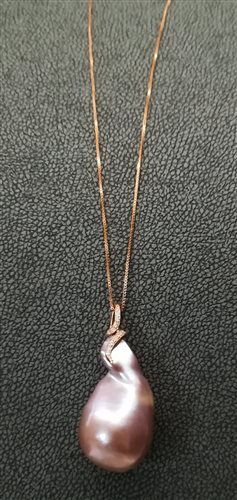 Collana oro rosa con perla barocca rosata diametro 13/16 mm e diamanti ct 0.07