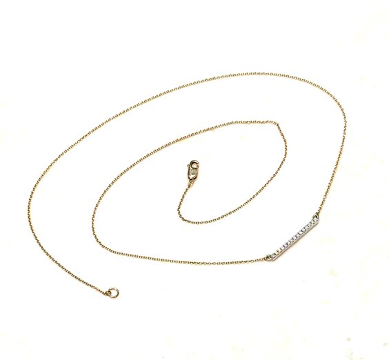 Collana a catena rollò in oro giallo 14Kr (585/°°°) con barra centrale lunga 2.20 cm impreziosita da diamanti taglio brillante