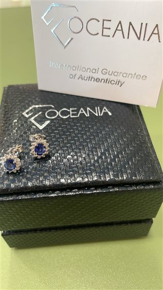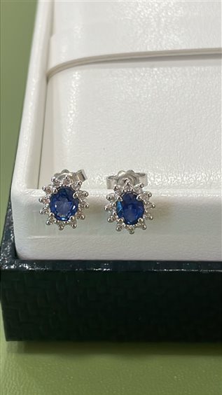 ORECCHINI OCEANIA IN ORO BIANCO KT18 CON ZAFFIRO CENTRALE KT 0.84 E DIAMANTI TAGLIO BRILLANTE KT 0.23 GVS.