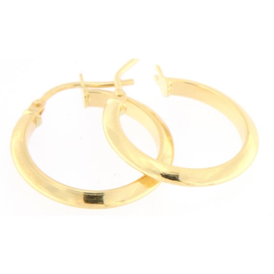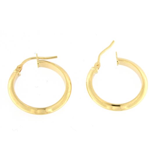 orecchino a cerchio con diametro cm 2,2 tutto oro giallo lucido .la canna è leggermente squadrata di larghezza mm 3. punzonate secondo normative
