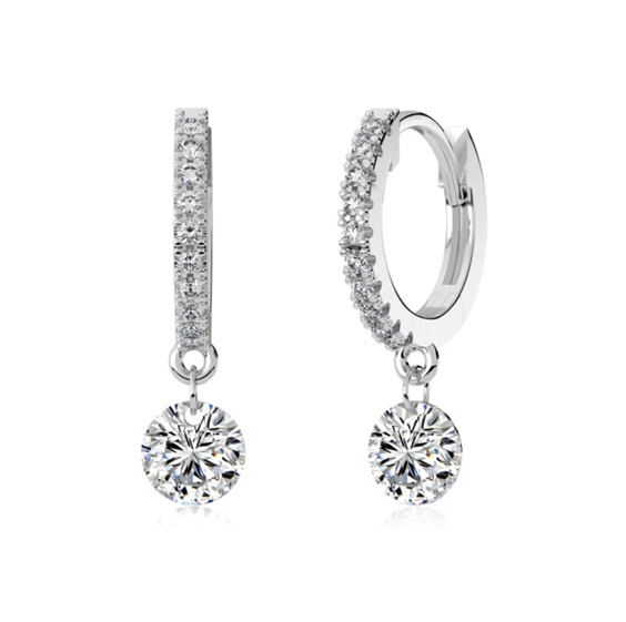 Orecchini a cerchio in argento 925 rodiato impreziosito con cubic zirconia taglio brillante
